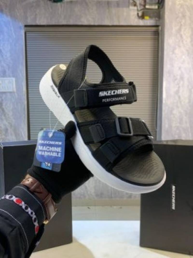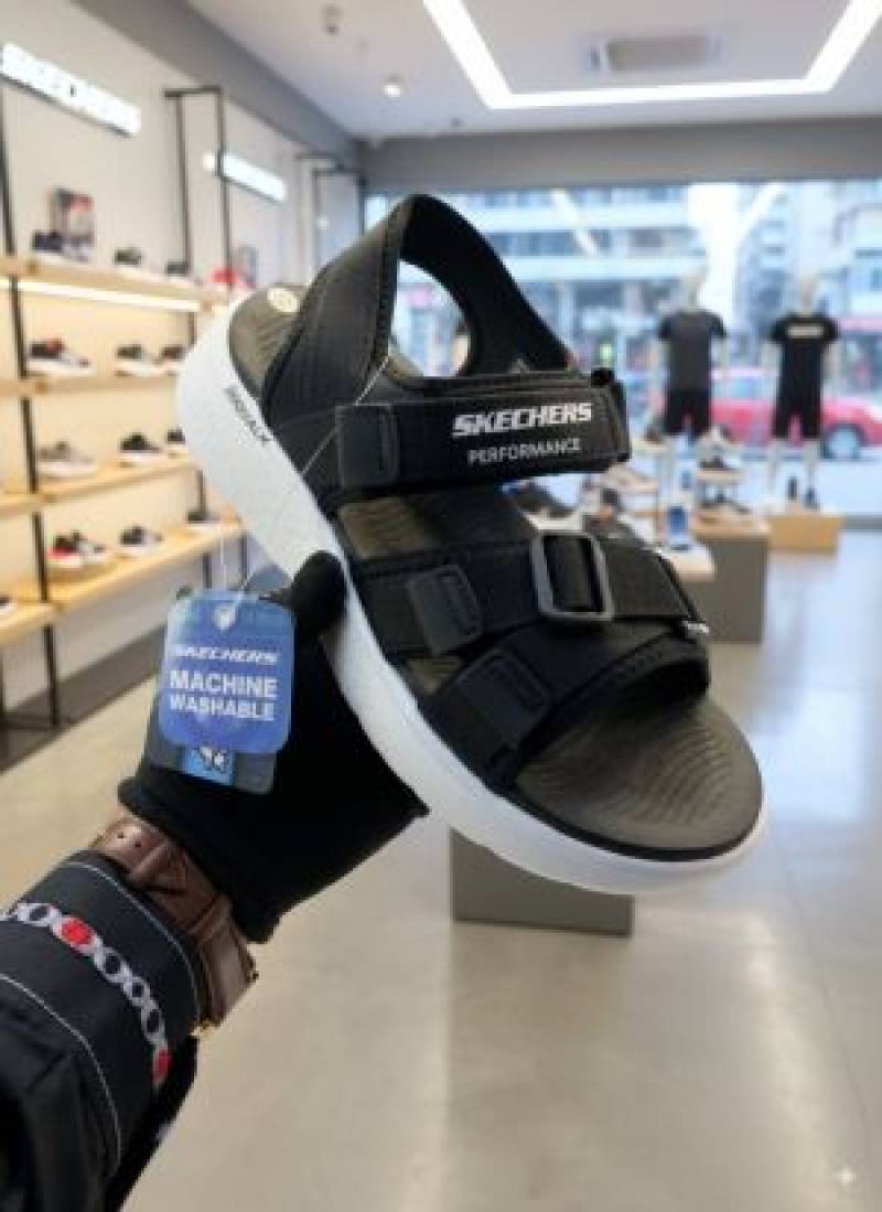 Skechers--Go-Walk-blk-white-Premium-Sandal